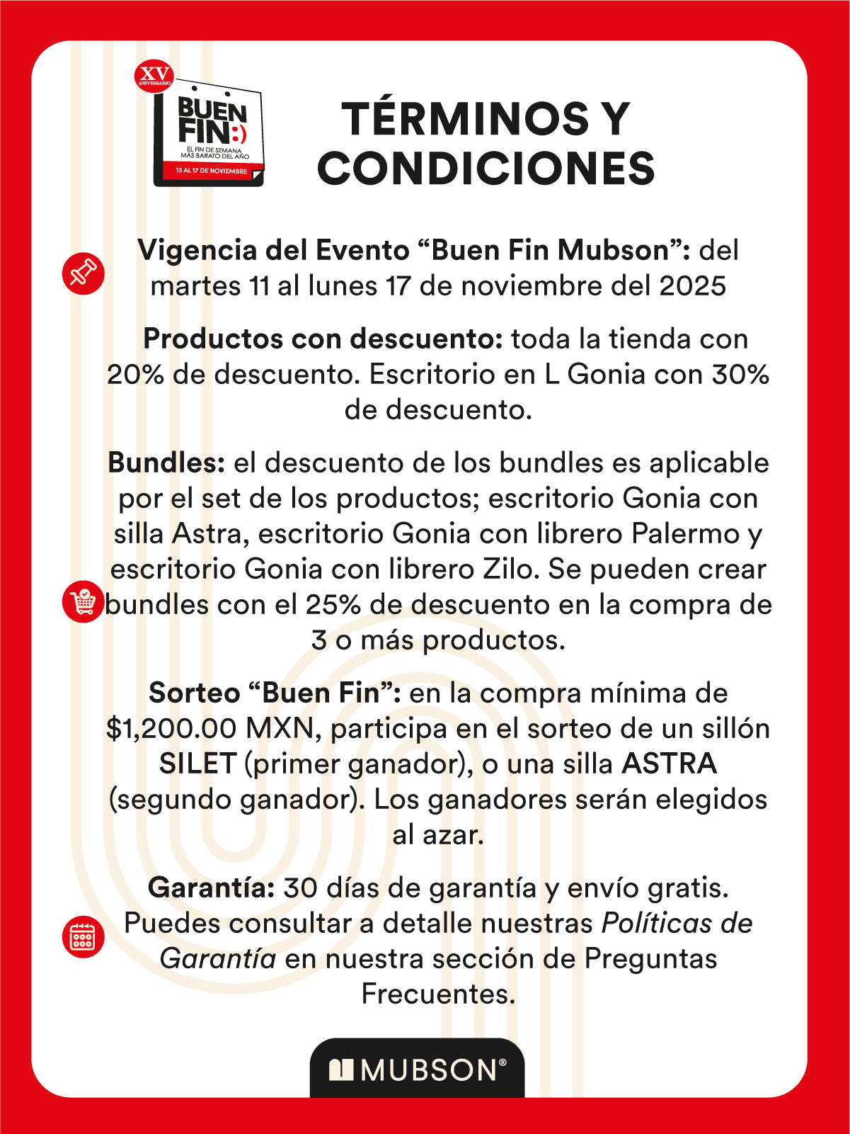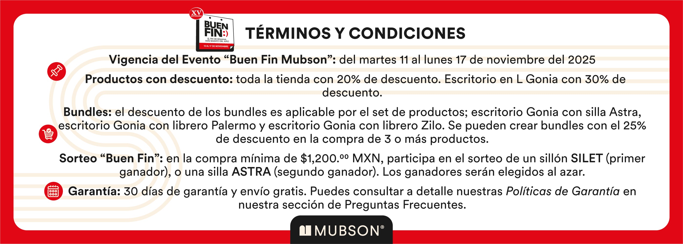 Diseñados para trabajar mejor, con materiales resistentes y estilo contemporáneo. Renueva tu oficina o tu estudio con la pieza más icónica del Buen Fin Mubson.