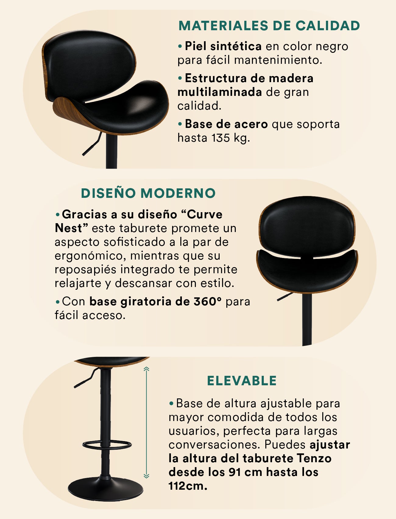 MUBSON Juego de 2 Bancos para Barra de Cocina Tenzo