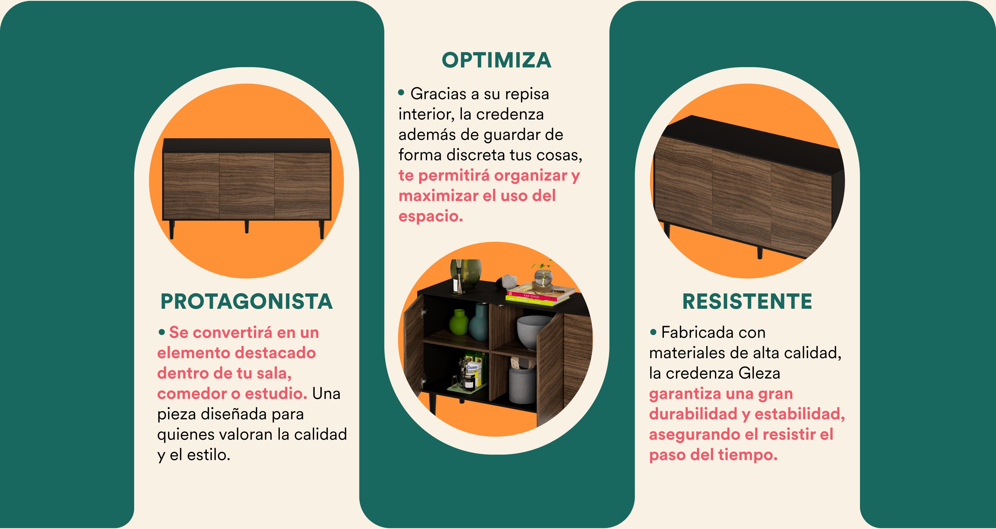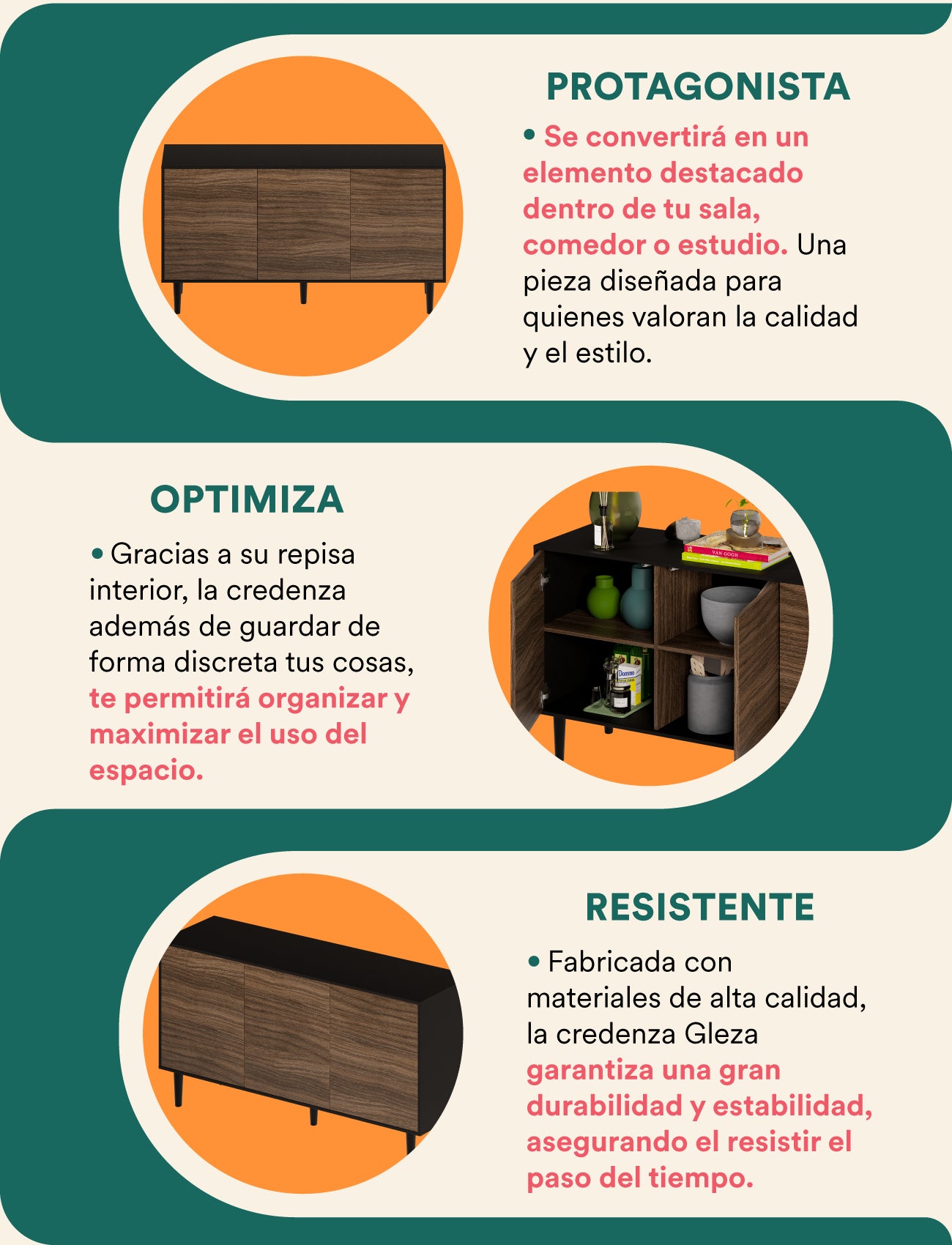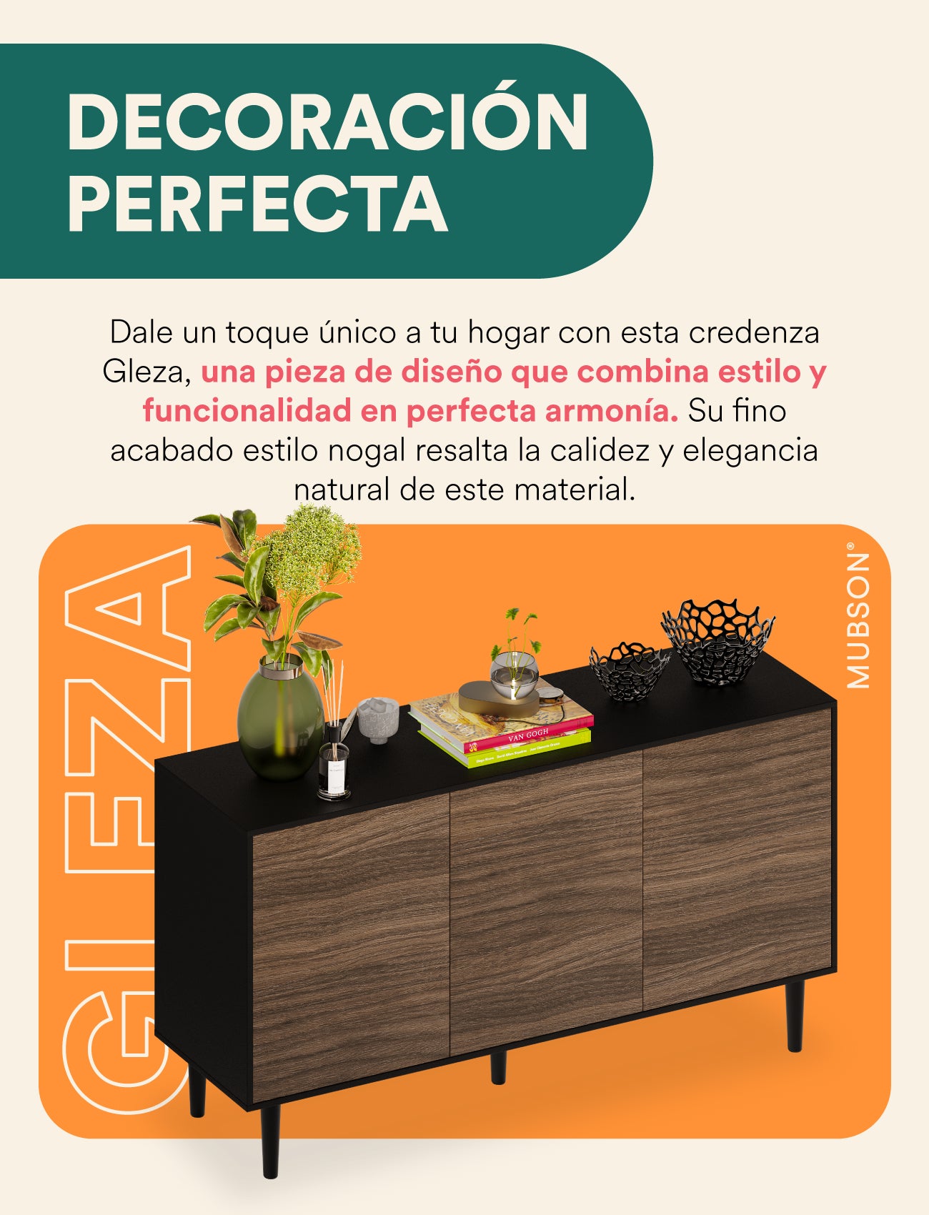 Mubson Credenza bufetera con puertas Gleza