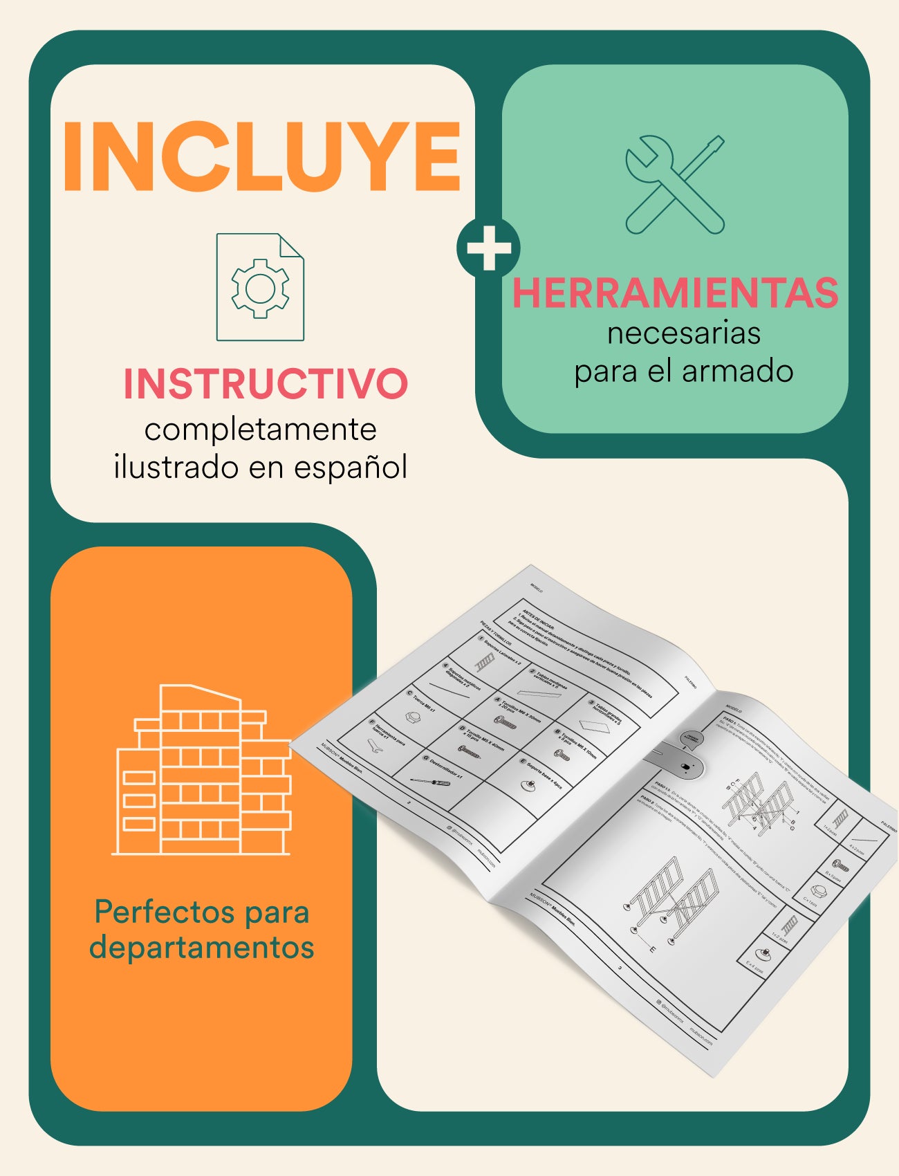 ¡Si! Todos nuestros muebles incluyen manuales completamente en español y con ilustraciones amigables para que puedas familiarizarte con las piezas y armado de una forma sencilla.