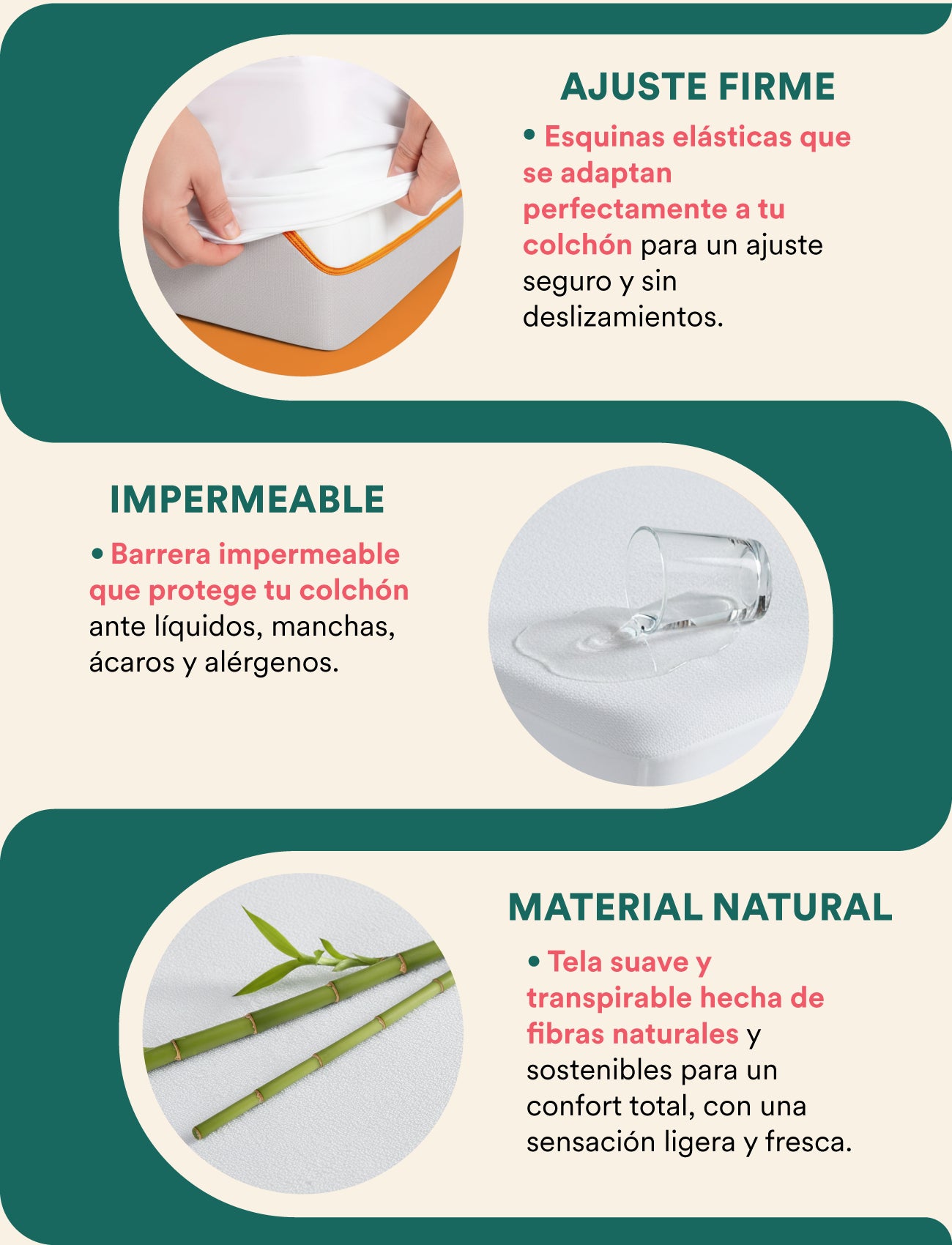 Cubre Colchon. Protector de Colchon Impermeable e Hipoalergenico