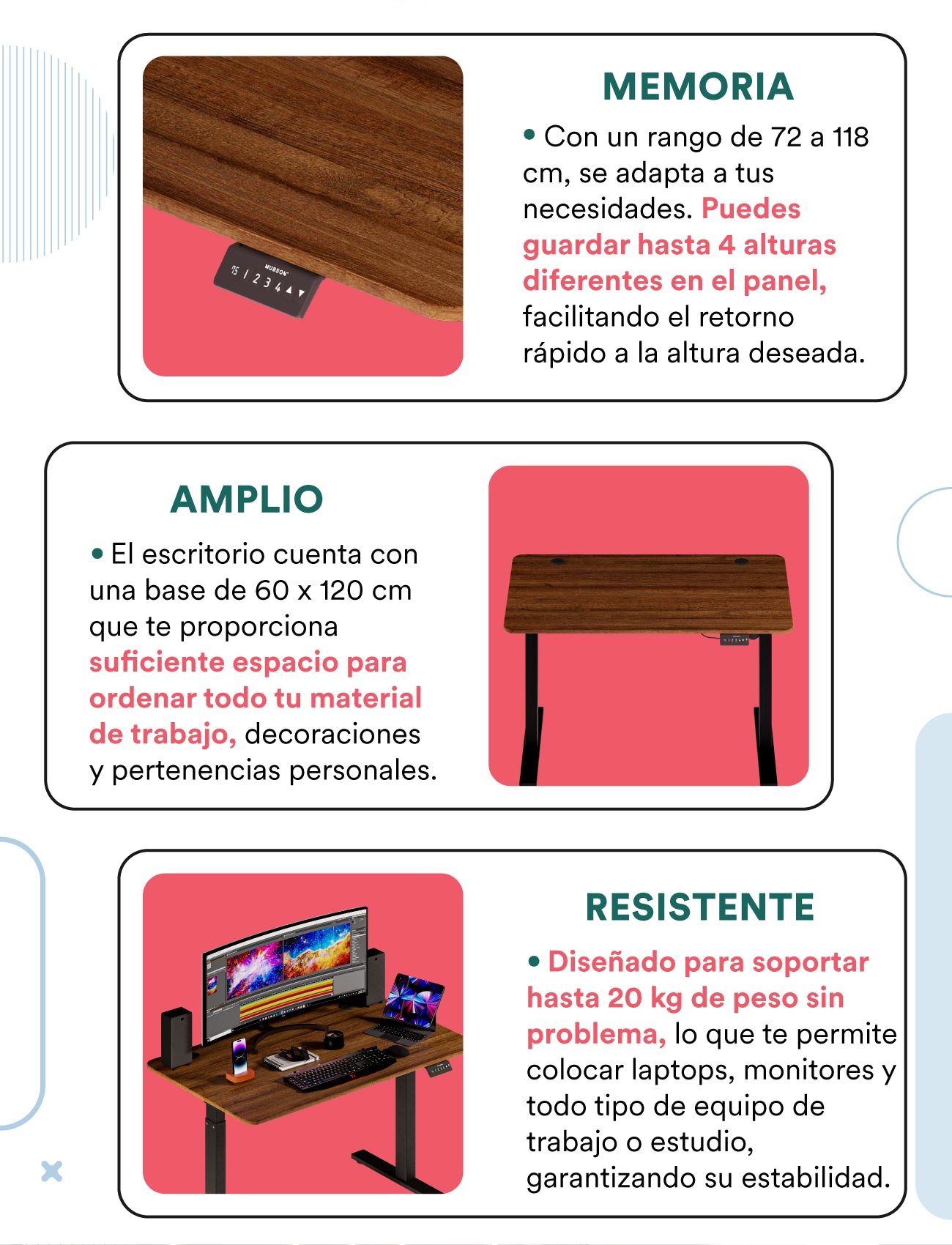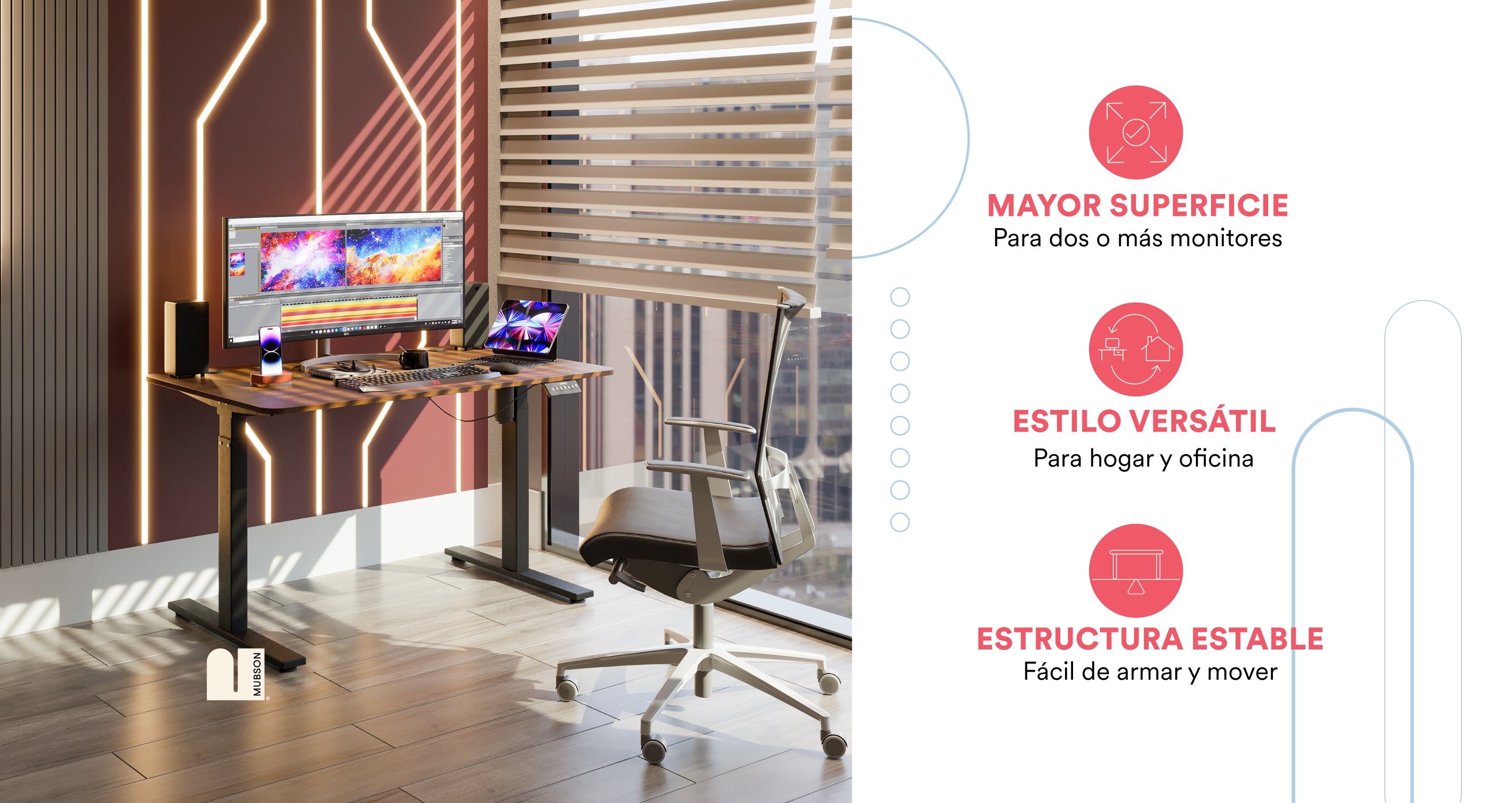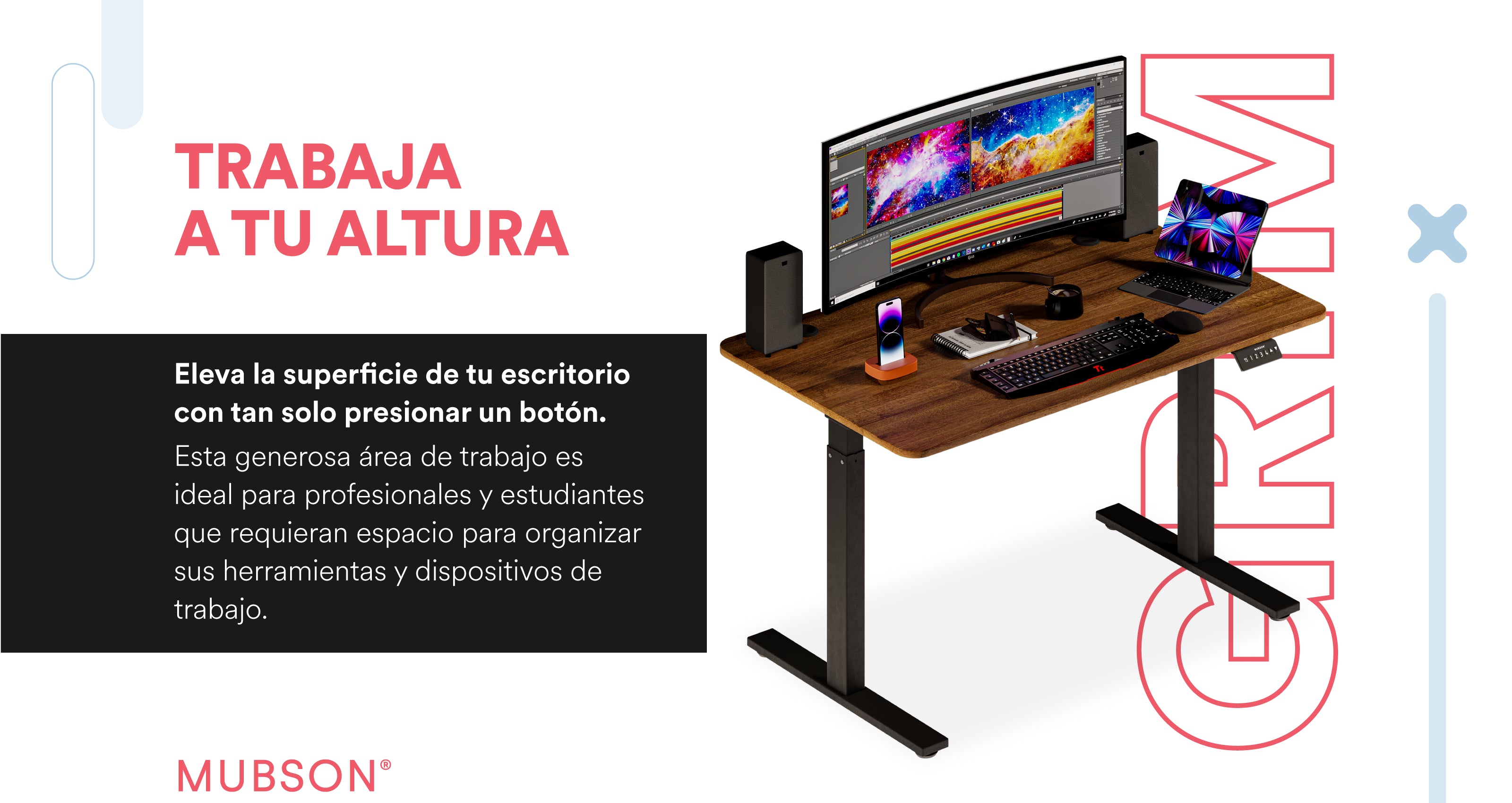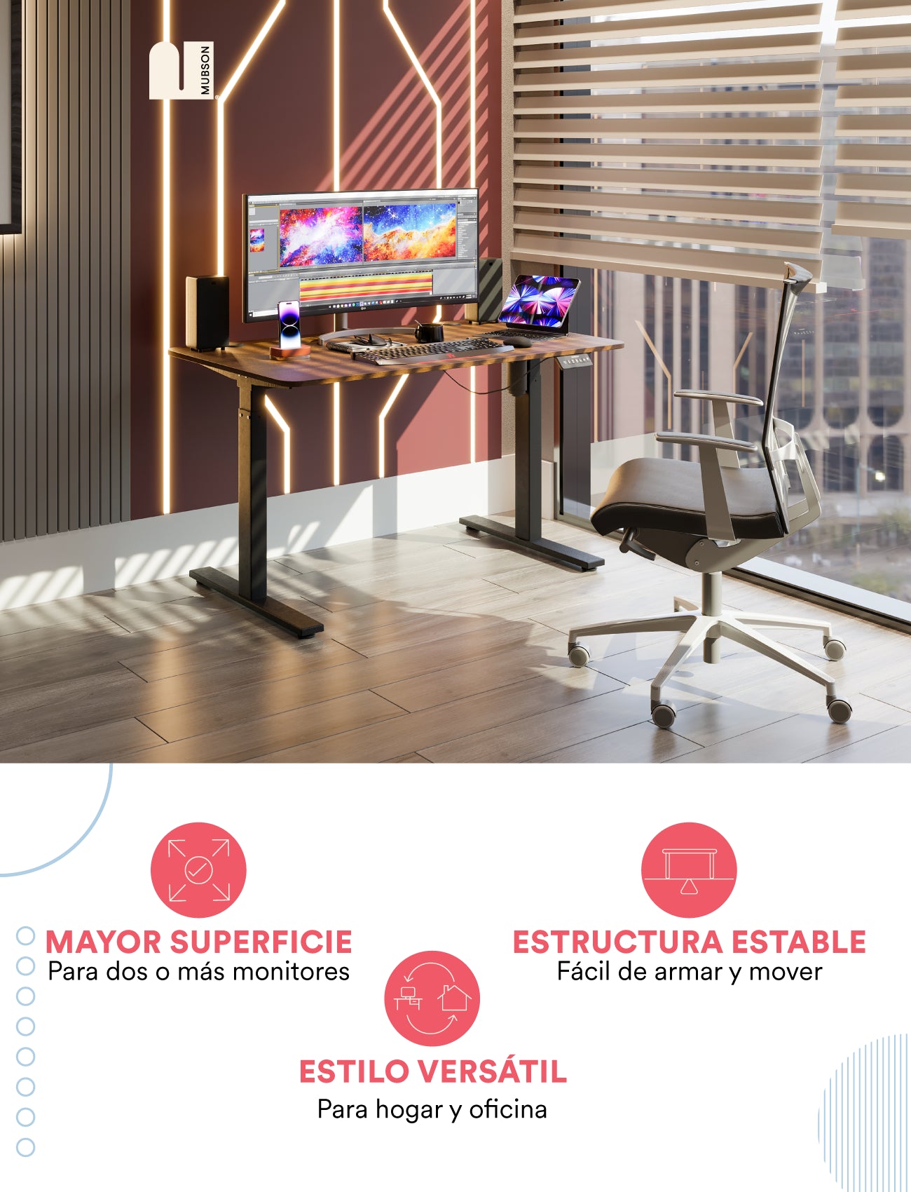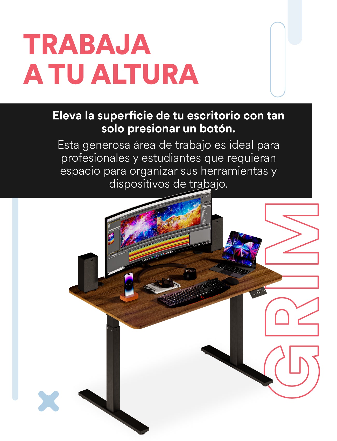 Escritorio Elevable Automático Gamer o de Oficina. Mesa de Trabajo Grim