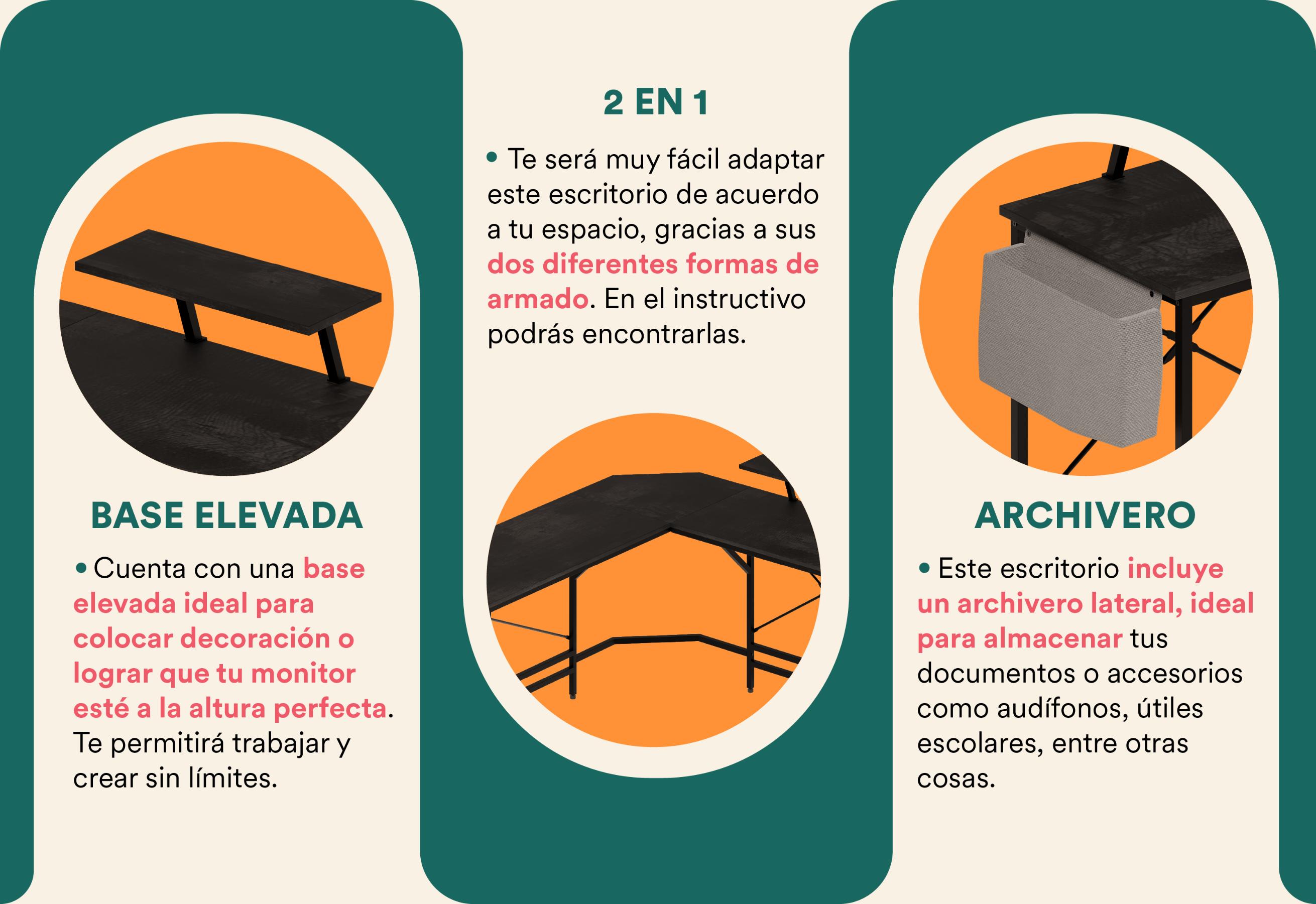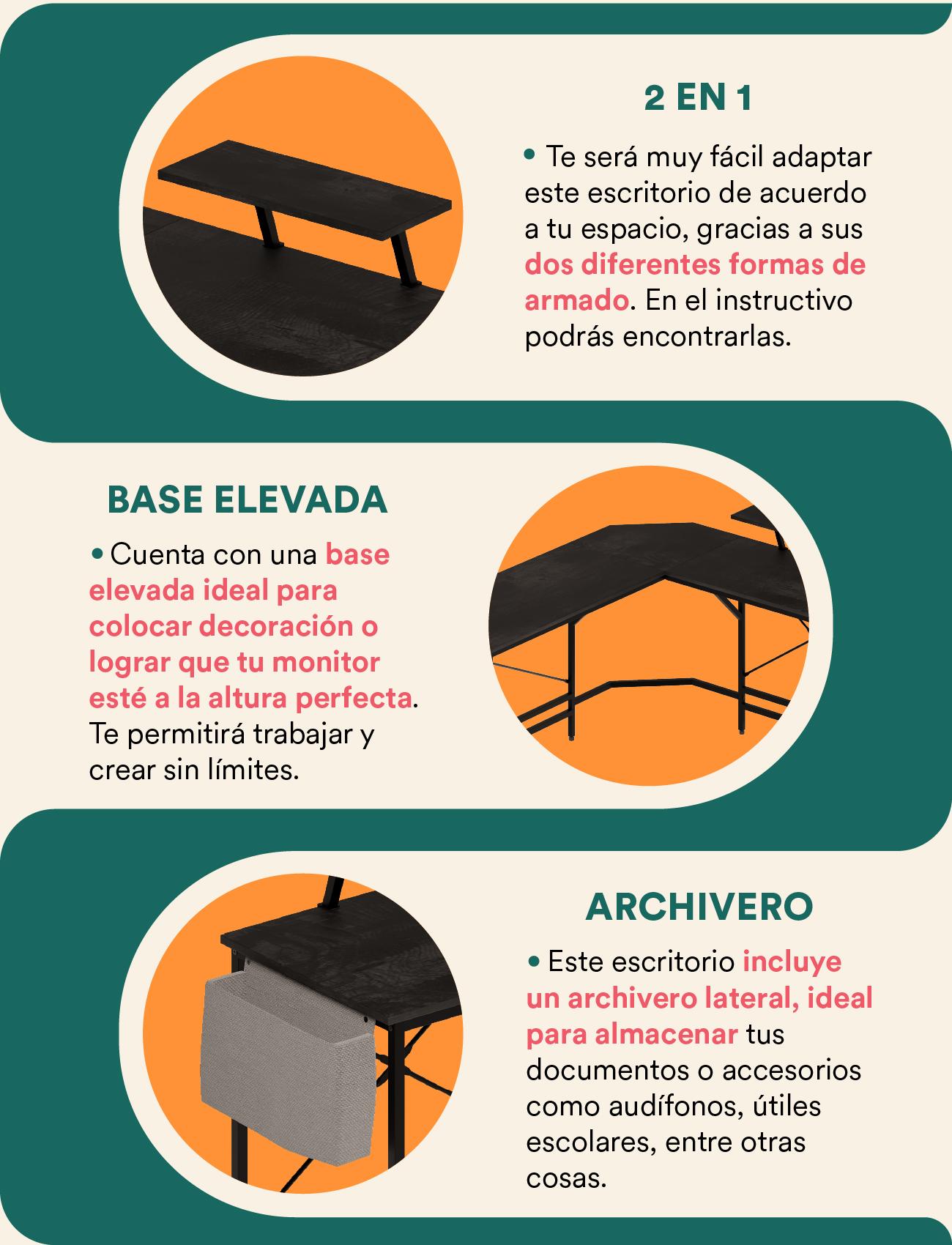 Escritorio en L + Librero Zilo (Set Up para Estudiantes)