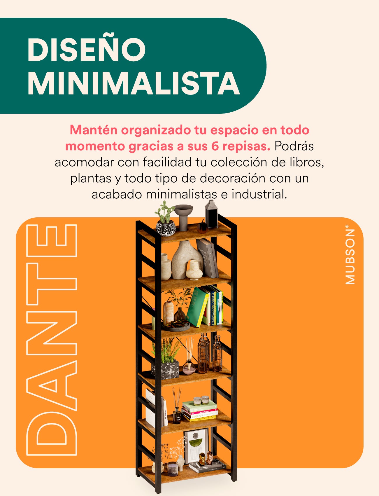 Librero Organizador con 6 Repisas. Estante Dante
