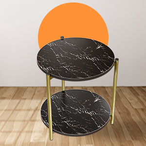 Mesa Auxiliar con Doble Repisa. Mesa Lateral Negra Triana