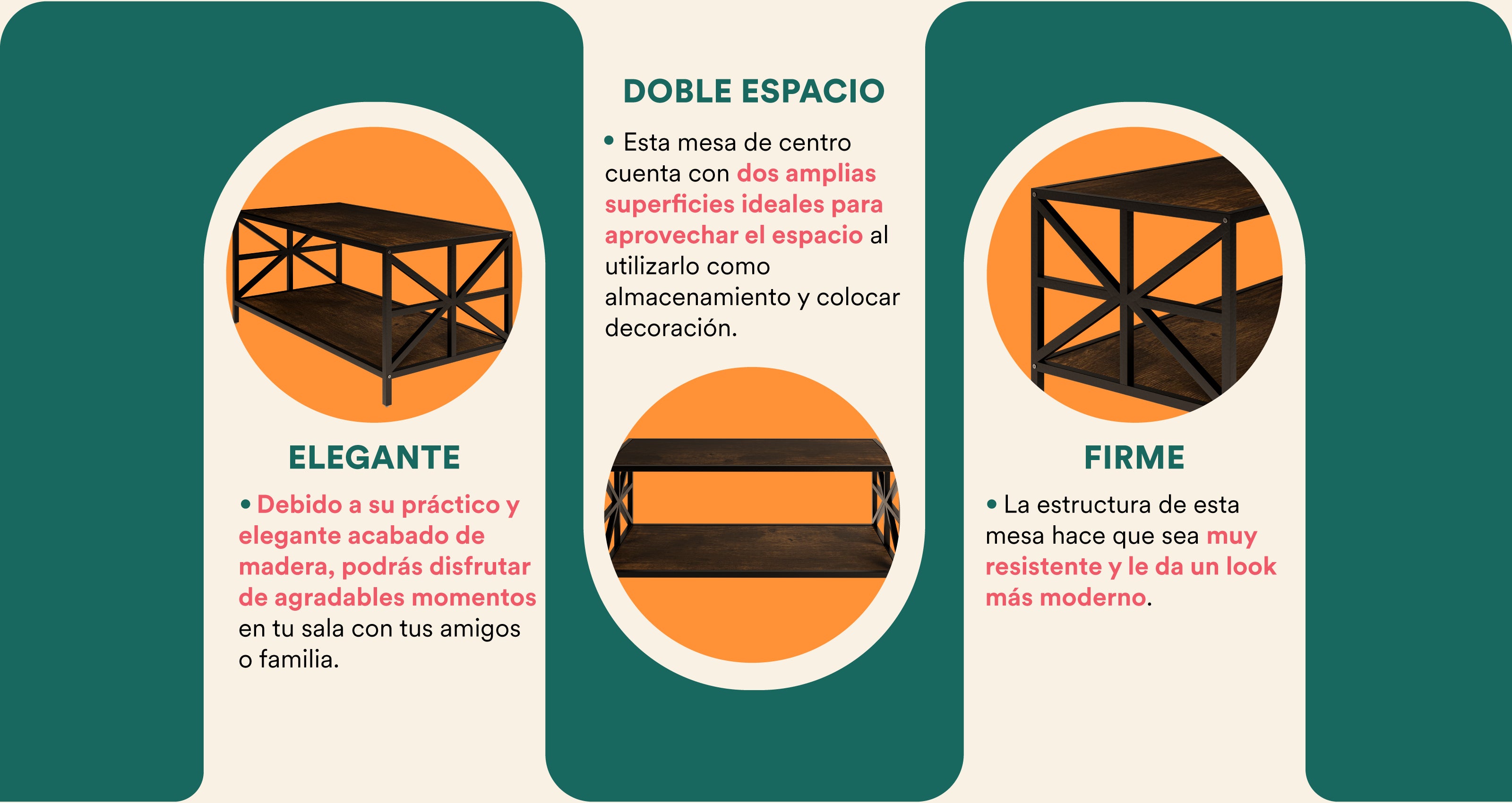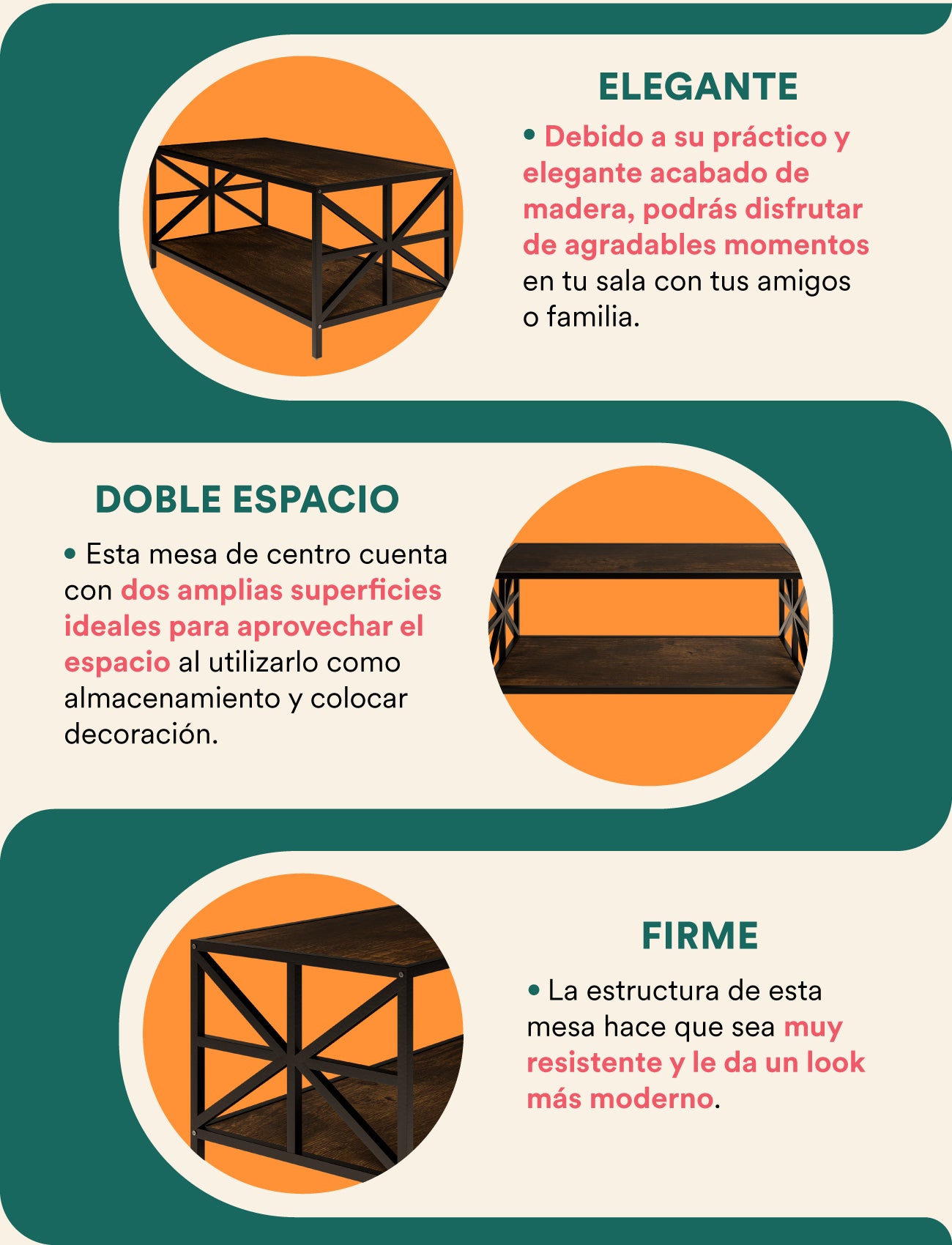 Mesa de Centro con Doble Repisa. Mesa de Centro para Sala Shaula