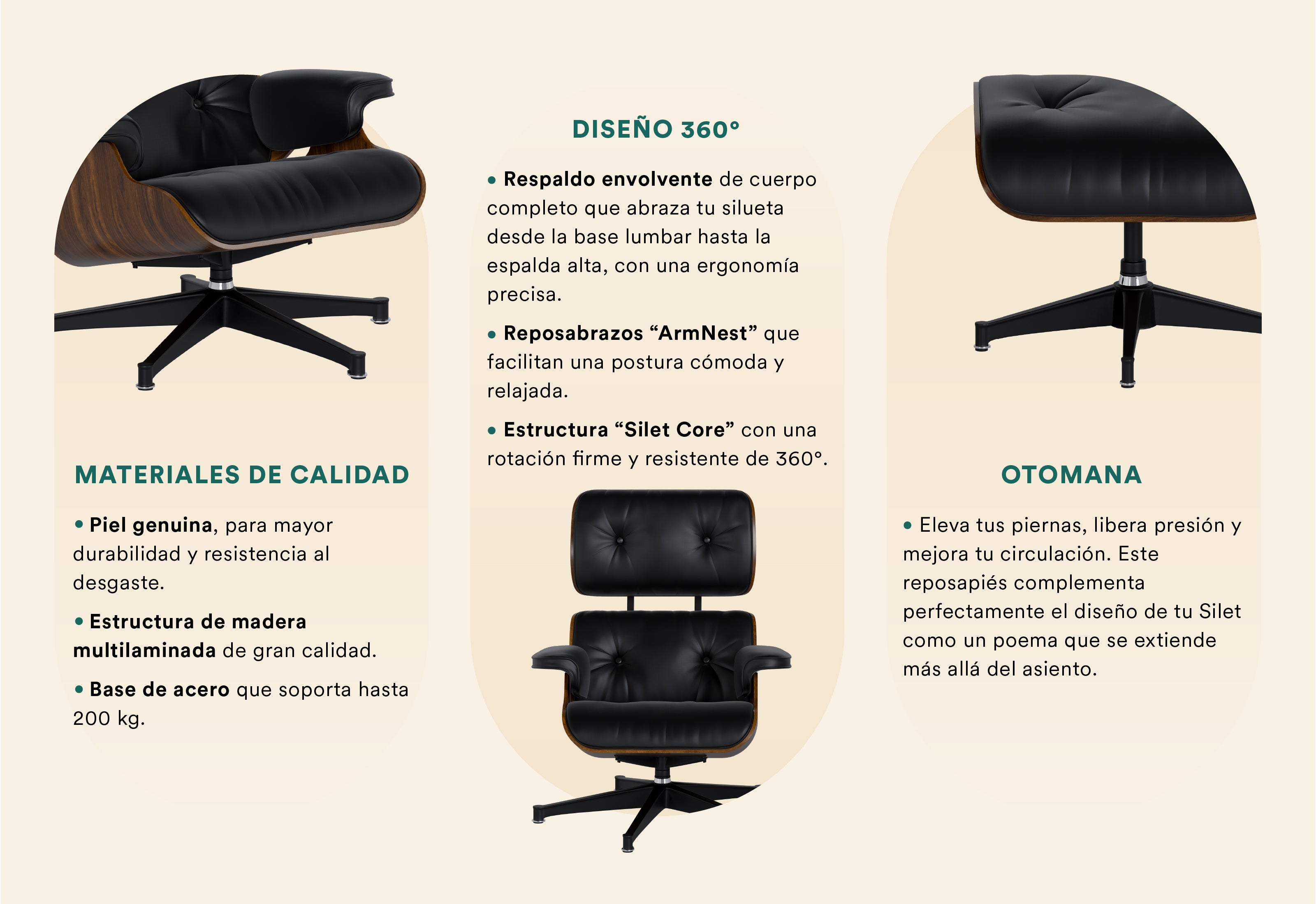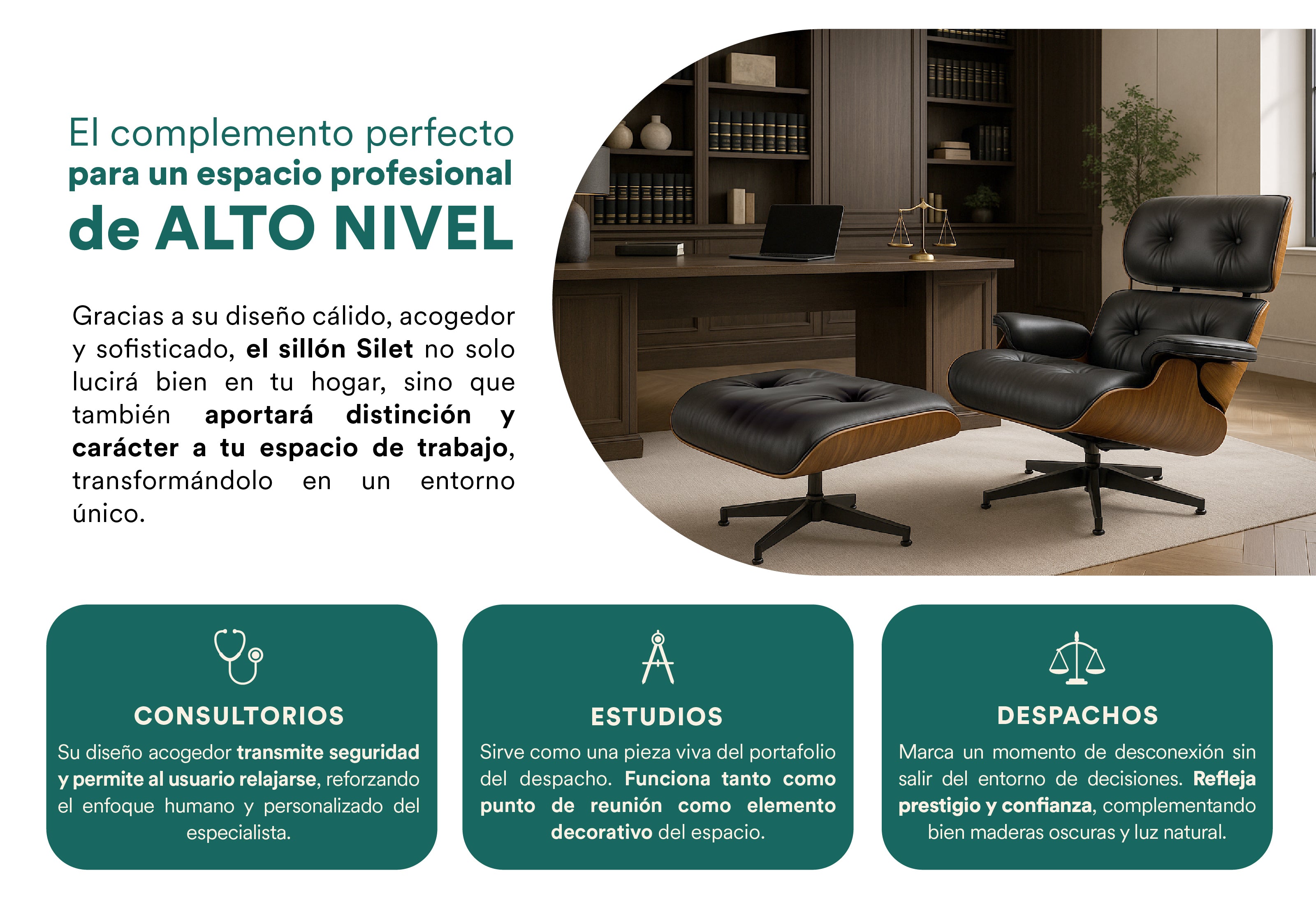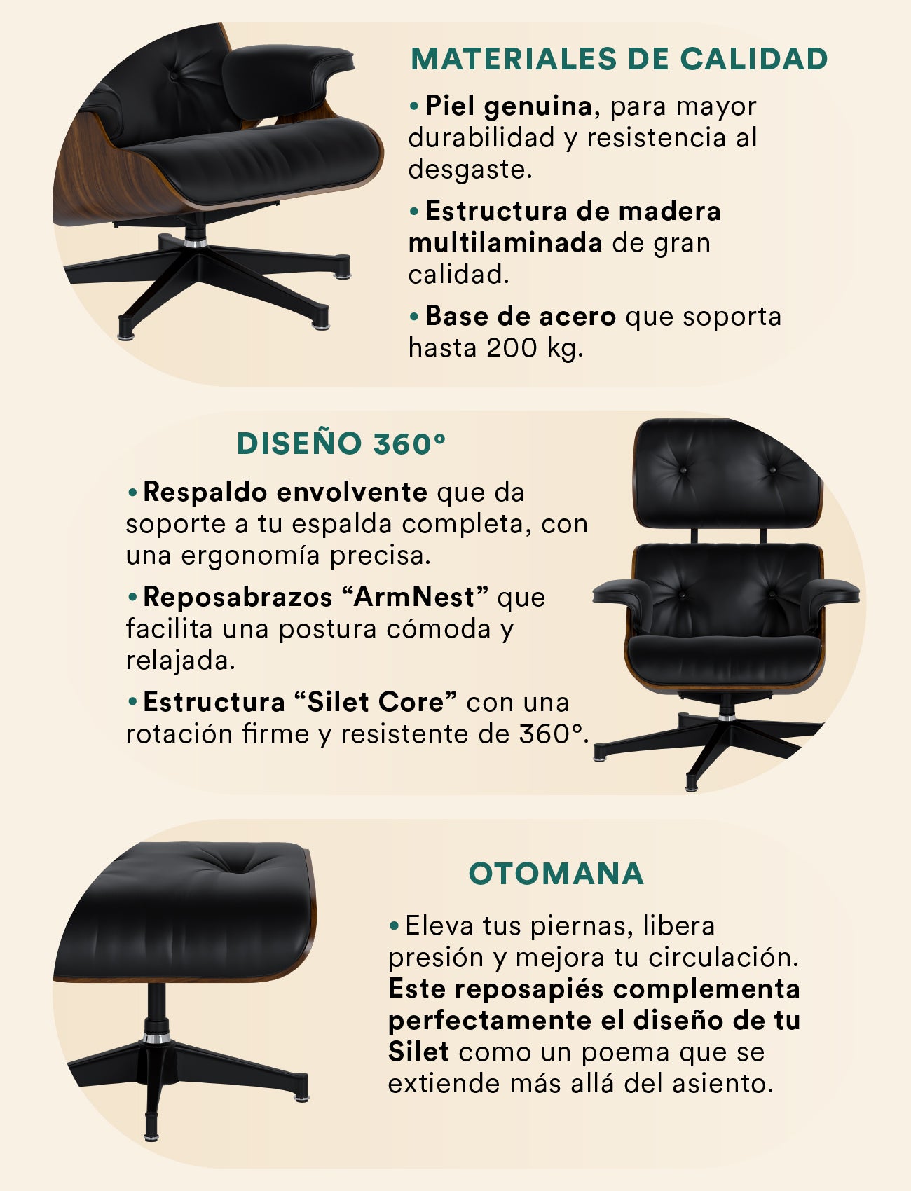 Sillon Reclinable. Sillon Lounge con Otomana De Piel Genuina Silet